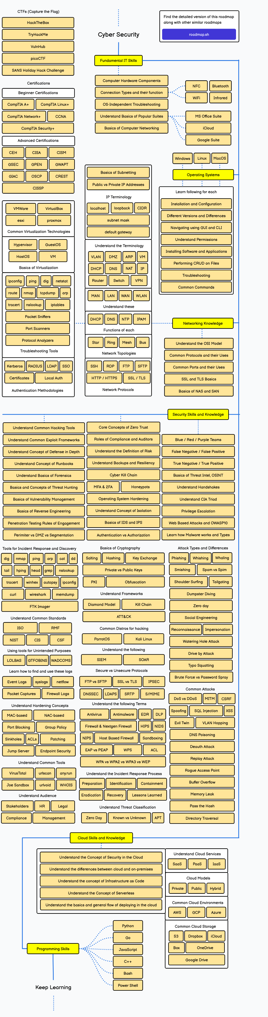 These are key skill sets within each pillar, providing a foundation in IT, Networking and cyber-security. familiarity with each area is essential. Remember, this is a journey—refer back to this guide as you progress, and be patient.